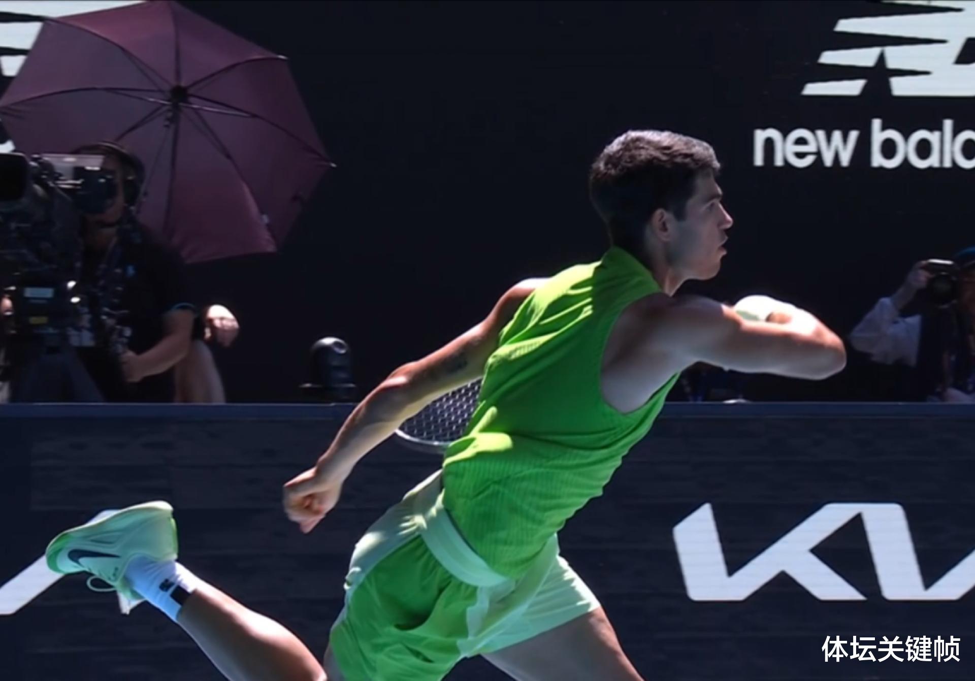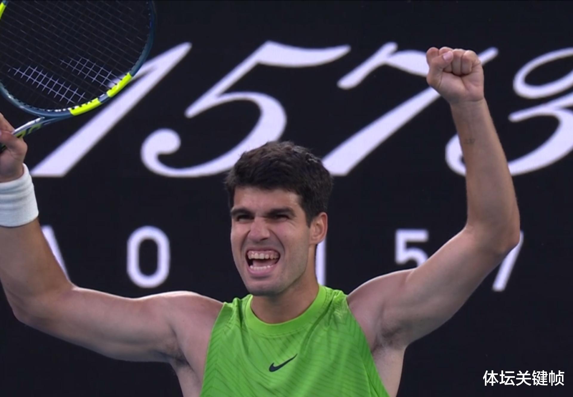 这场世界前三选手之间的对决耗时5 小时 27 分钟,创下澳网半决赛时长新纪录!22 岁的阿尔卡拉斯在比赛初期建立起领先优势,却在第三盘遭遇抽筋困扰。