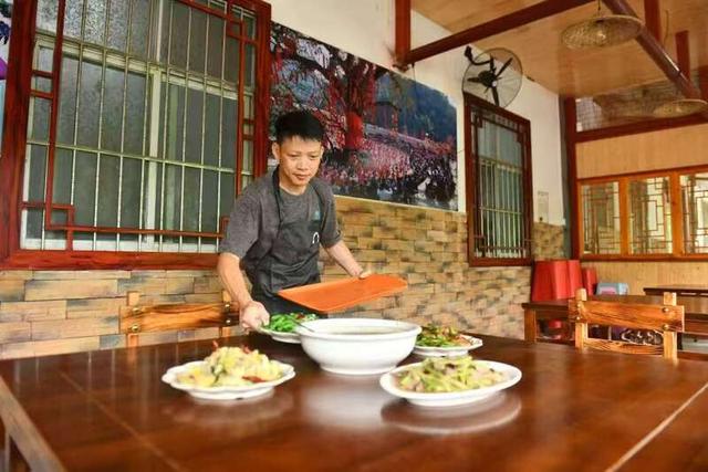 “前段时间村里举办麃汤节时,我这里接待了15桌,这个月营业额有两万元左右,六七月旺季时一个月营业额能有十一二万元。”梁祥会说,现在他和妻子、父母一起经营农家乐,还种植了11亩砂糖橘、30多亩油茶,年收入可达20多万元。