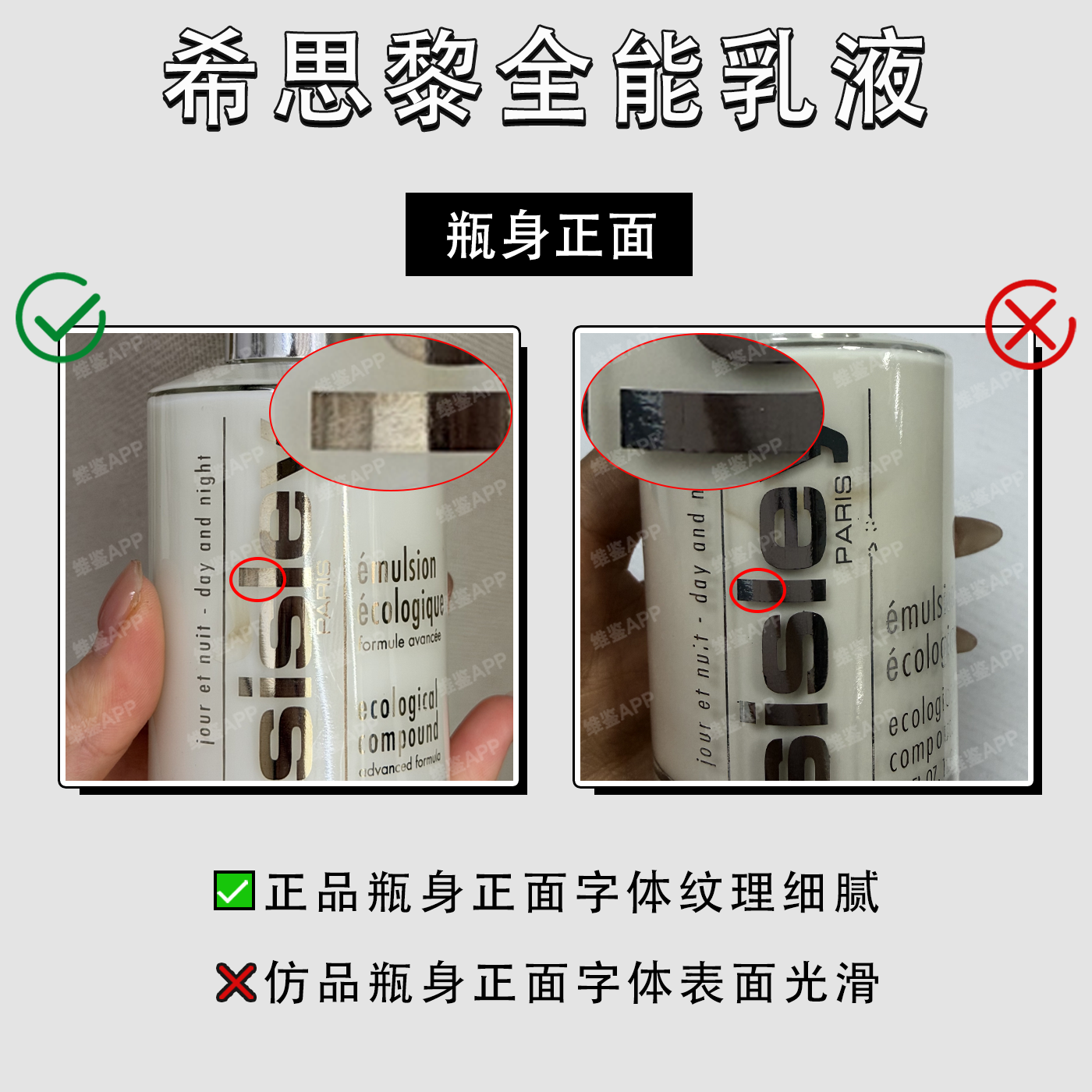 正品瓶身正面字体纹理细腻