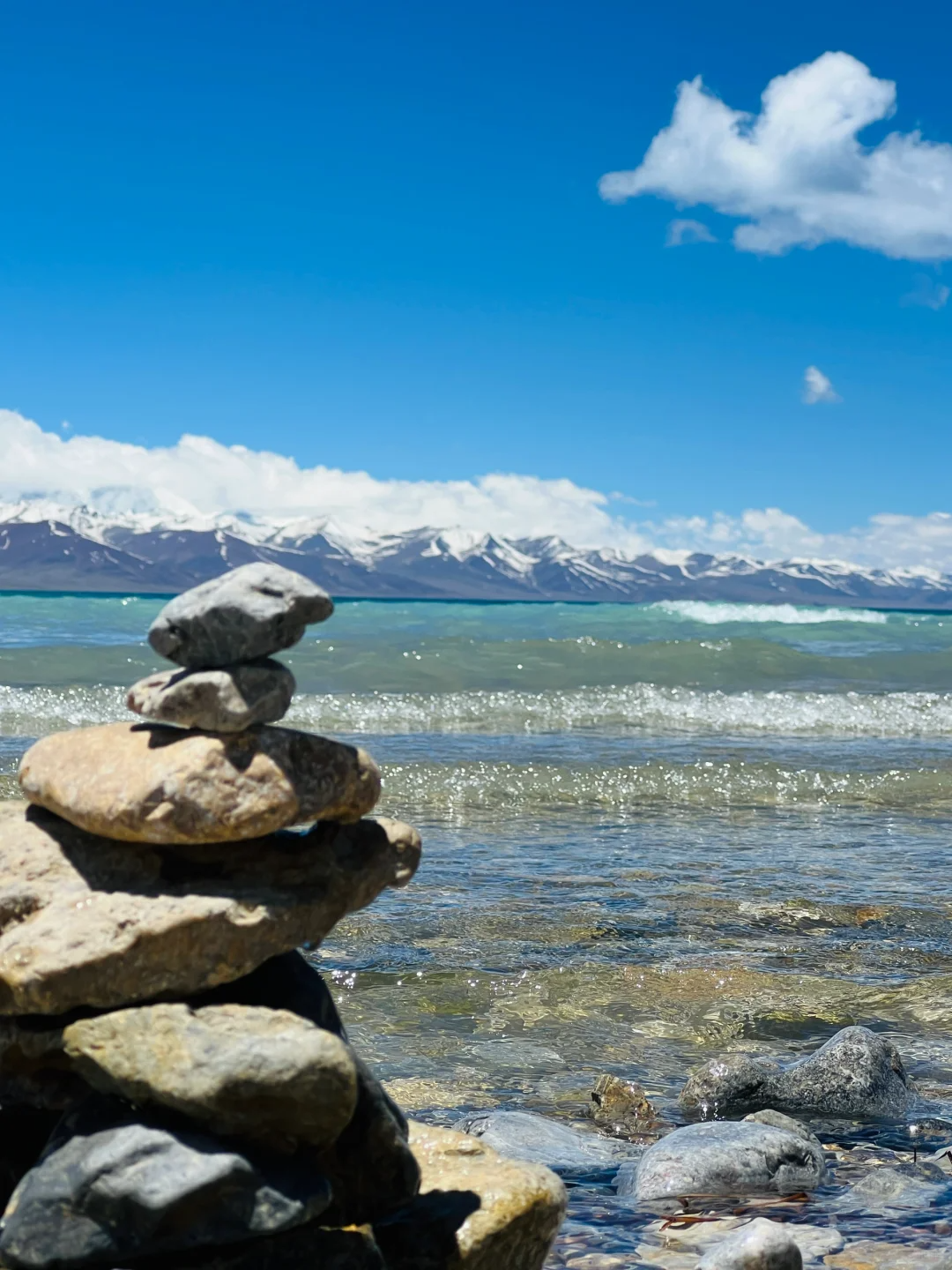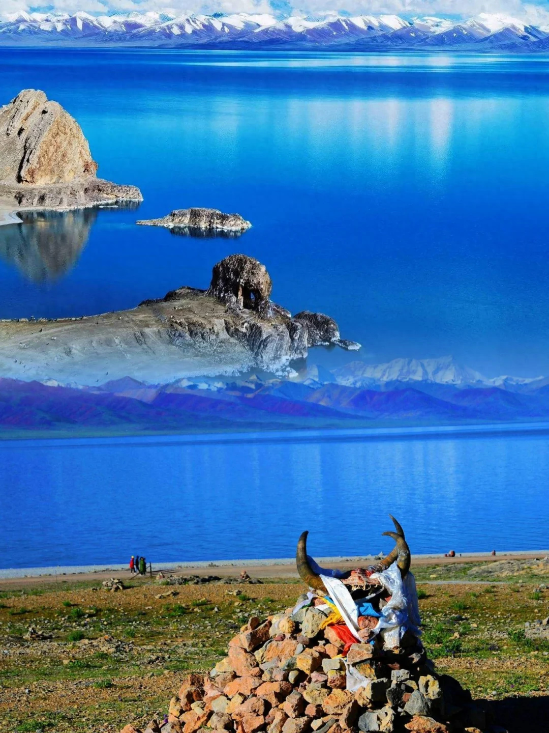 她位于海拔4718米的高原之上,湖水深邃幽蓝,仿佛能洗净世间一切尘埃。站在湖边感受到一种前所未有的宁静与圣洁,远处的念青唐古拉雪山与纳木错相映成趣,构成了一幅绝美的画卷。