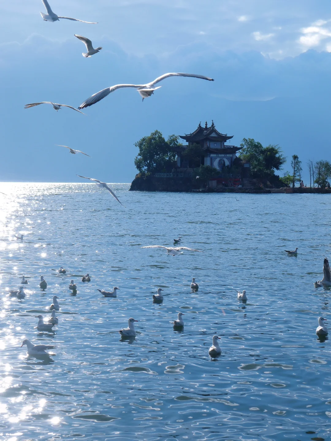 湖水与景致:洱海湖水碧绿如翡翠,清澈见底,与远处的苍山相映成趣。漫步洱海边,感受到“下关风、上关花、苍山雪、洱海月”的浪漫情怀。黄昏时分,夕阳的余晖洒在湖面上,波光粼粼,美不胜收。