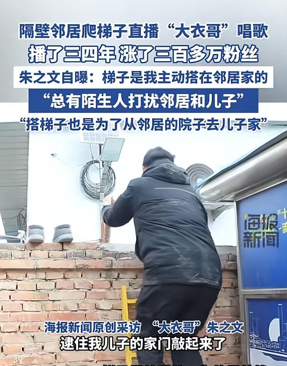 为了方便甚至还主动在邻居家搭梯子,方便邻居在允许的情况下进行拍摄。这样一来,自家被围堵时,也能轻松翻到邻居家去看看儿子。