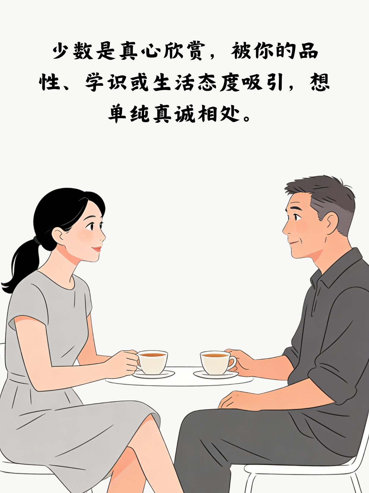 人到晚年,人心复杂,异性的接近从来不是无缘无故。别被一时的热情冲昏头脑,也别过度怀疑否定所有善意。关键是看清背后的目的,分清是图物质、图帮助,还是真心相待。晚年交友,慢一点、稳一点,守住自己的底线与财产,才能在陪伴中获得真正的安心。愿你既能抵御虚伪的算计,也能遇见真诚的温暖,晚年生活安稳又舒心。