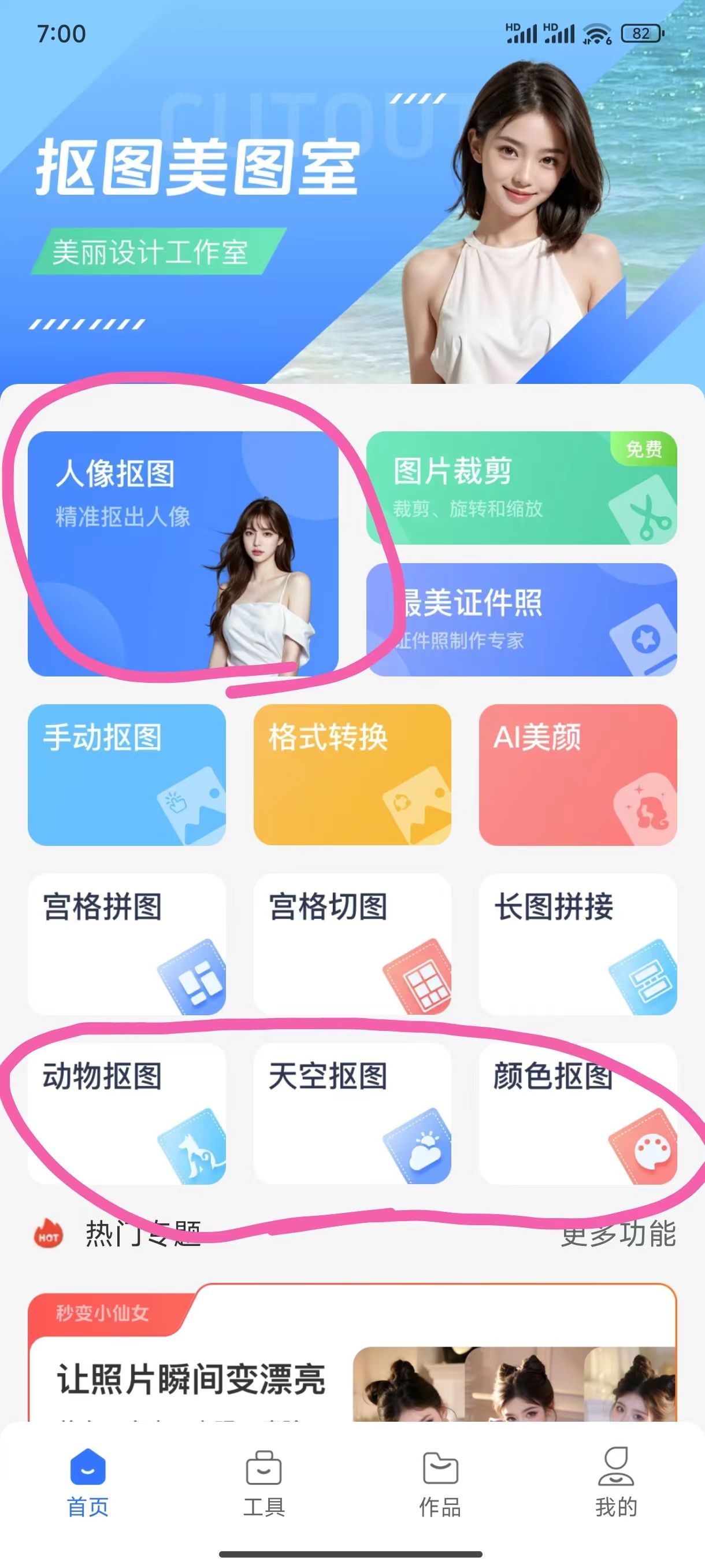 抠图美图室来啦!一键抠图换背景,还能编辑、转格式、做证件照,AI美颜、拼图切图样样行,轻松搞定你的美图需求,快来试试吧!😉