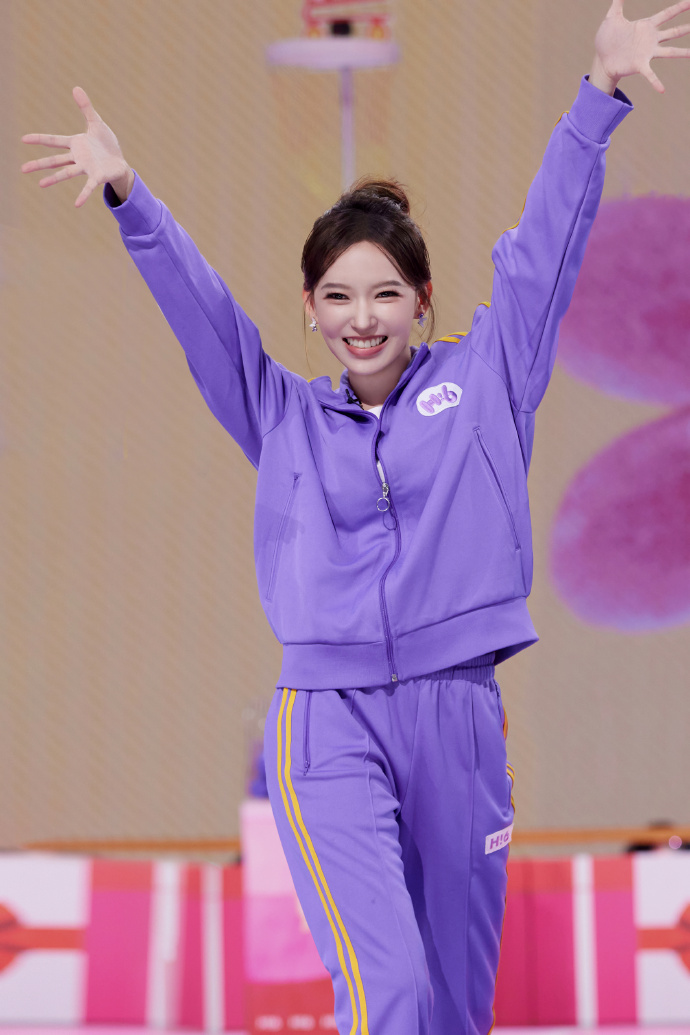 运动套装也非常适合程潇,她身材高挑,曲线窈窕,紫色运动装搭配利落的盘发造型,既保持了活泼感,又能尽显时尚。同时,搭配的耳环也成为了她整体造型的重要组成部分,让她的运动穿搭更加时尚有型。