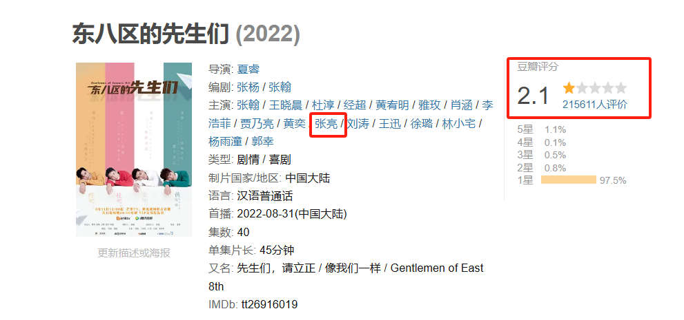张亮也因为四部代表作,豆瓣评分都在3分以下,被观众吐槽为“三分影帝”,并劝他赶紧回家“洗洗睡吧”。