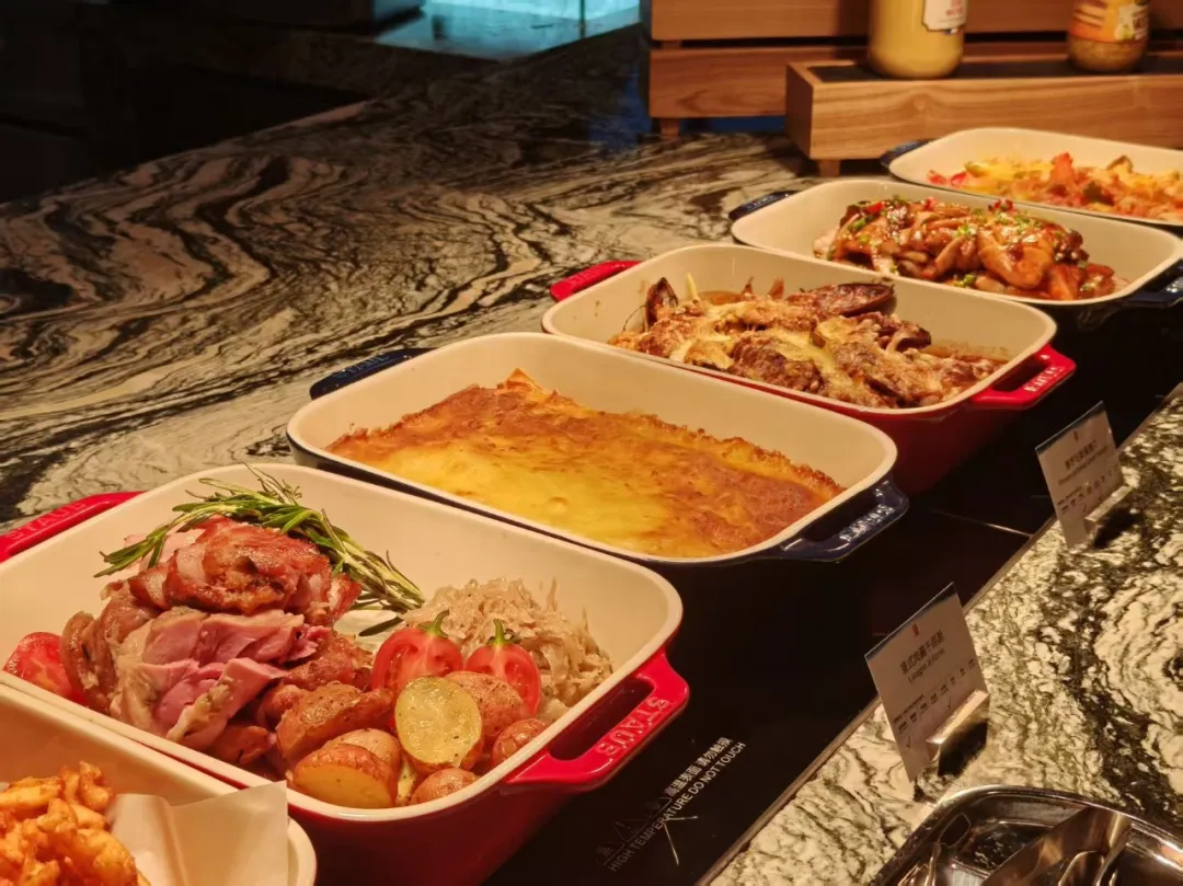 鲜艳全日餐厅主打环球自助,海鲜、烧烤、甜品一站式畅享,重点夸夸现做陕西油泼面,地道又入味;彩丰楼是高端中餐首选,以孔雀为灵感的装潢超雅致,主打融合陕菜与粤菜,商务宴请或家庭聚餐都超有面;麺家专门做各式地道面食,biangbiang面、臊子面任选,碳水星人直接狂喜;举茗邑专属茶歇空间,不仅有各式茗茶和精致下午茶,还会有手作新中式茶道表演,商务会客或朋友小聚都超有格调;华邑行政酒廊则为行政楼层客人提供专属礼遇,下午茶、欢乐时光随心享~