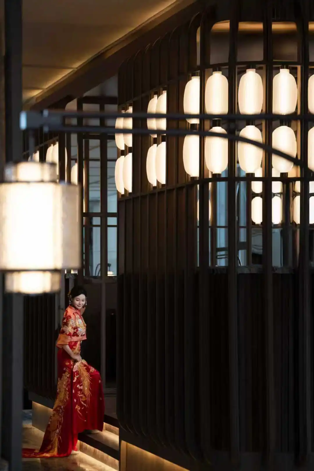 备婚新人必看!华邑婚宴完美契合中华美学生活化定位,直接把「中式雅致仪式感」拉满~ 千平无柱宴会厅,挑高充足不压抑,不管是小型精致婚宴还是大型盛典都能hold住!装修融入凤凰、孔雀等中式吉祥元素,暖调灯光氛围感十足。