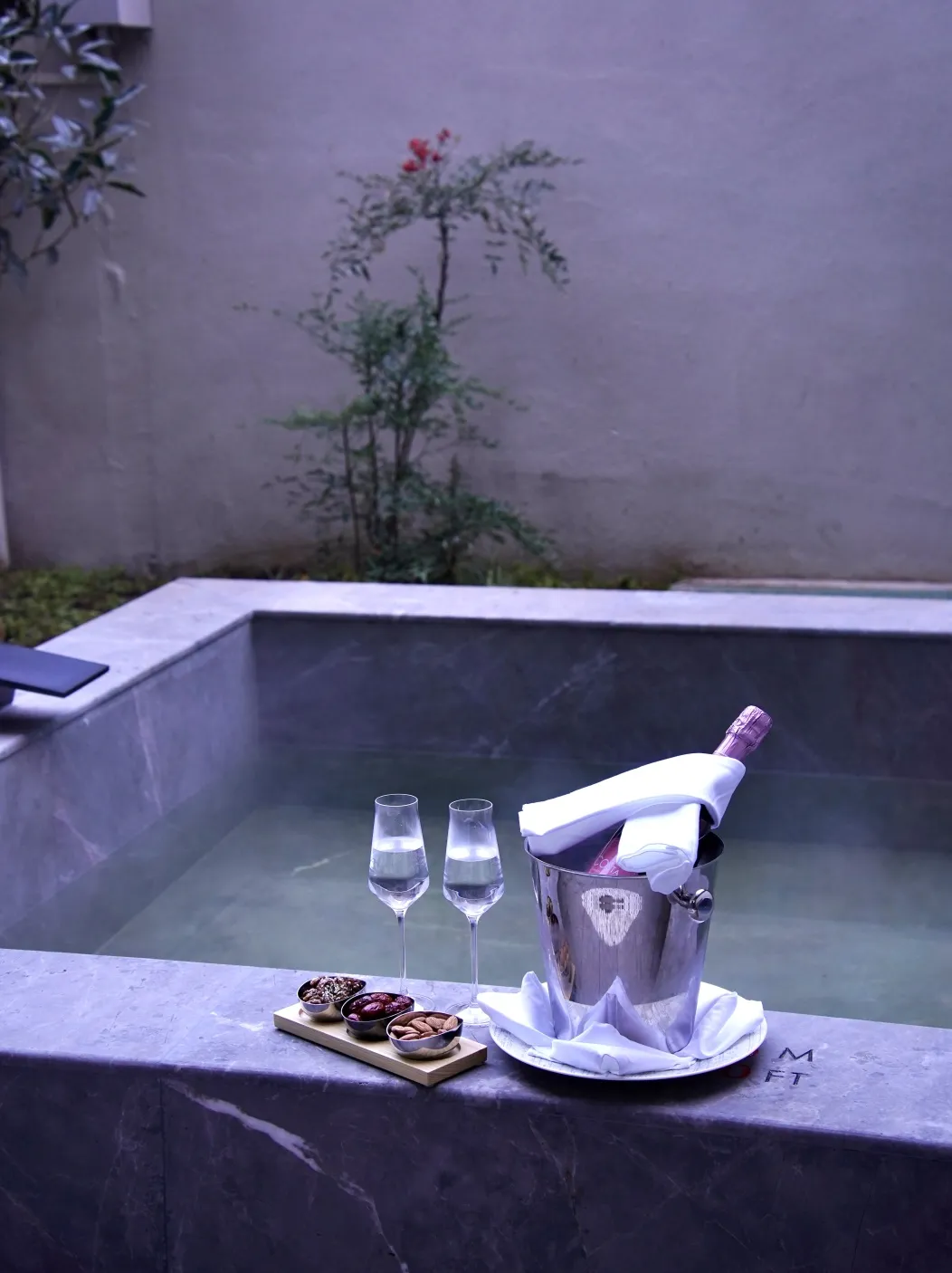 干燥寒冷的冬天,谁能拒绝一场私汤治愈!咸阳华邑酒店深耕中华美学生活化,王牌「私汤入户」必须重点安利——庭院私汤房真的美到心巴上!自带独门小院与入户汤池,汤池旁绿叶掩映,摆上甜品美酒,泡汤尽享惬意。