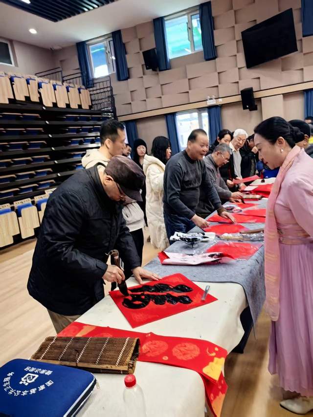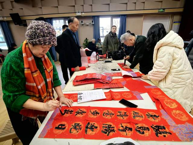 活动特别设置了“心愿对联”环节,充满了人情味。刚搬进玉海园小区的新住户,求取“乔迁新居沾喜气,玉海安居乐天伦”的对联,期盼在新家园开始美满生活;家里刚刚添丁的家庭,喜获“麟趾呈祥门毓瑞,春风入户岁更新”,寄托了对新生命的美好祝福;新婚不久的夫妇,则收到了“琴瑟和鸣玉海月,芝兰同茂社区春”的佳对,寓意婚姻甜蜜,扎根社区共同成长。书画家们根据居民的不同需求“量身定制”,一副副承载着个性化祝福的春联,不仅送出了吉祥如意,更送出了深深的邻里关怀与社区温暖,让传统文化在互动中焕发新的生命力。千门万户曈曈日,总把新桃换旧符,是中国过年最广泛最普遍的过年文化符号,也是燕赵委员会举行燕赵杯喜迎新年的最大文化符号。