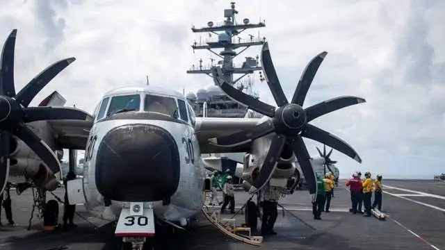 在这方面,美国海军航母打击群长期依赖看似“默默无闻”、实则必不可少的C-2“灰狗”涡桨式舰载运输机。尤其是当美国海军开始列装F-35C隐身舰载机后,CMV-22倾转旋翼舰载机的机舱内部,难以容纳F-35C使用的F-135航空发动机。如果有F-35C需要在出海期间更换发动机,就只能由货舱体量更大的C-2舰载运输机,往返于距离航母部署海域较近的陆地海外基地,实现F-135发动机的送修和换新。