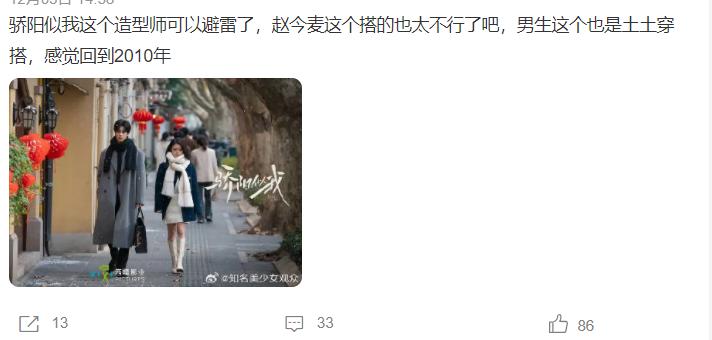 这部剧刚开机的时候,网上经常传出各种路透图,当时很多网友都忍不住吐槽:主演的服化道是认真的吗?怎么都这么土?然后,很多网友就将这部剧和《以爱为营》进行对比,要知道《以爱为营》是王鹤棣和白鹿主演的电视剧,可是这部剧播出的时候,两位高颜值明星都无法驾驭剧中的部分服装。