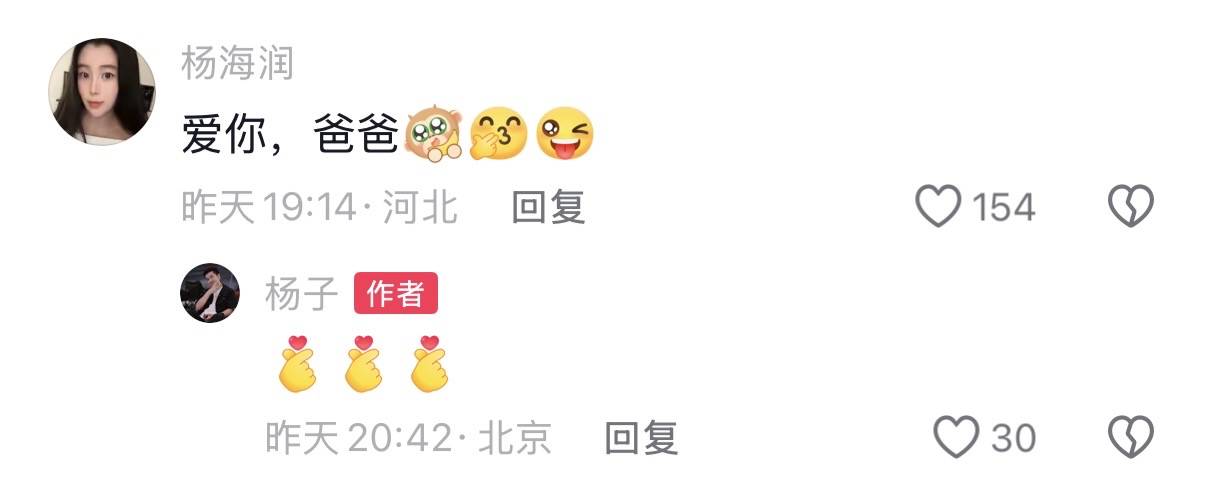 杨子的女儿也给爸爸评论了,还表达了对爸爸的爱意。其实杨子也是个挺不错的人,即便有些大男子主义,也没亏待过身边的人,都是可以得到切实的利益和好处的。