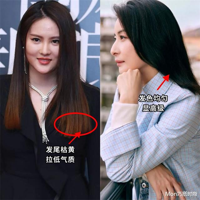 而发色上,纯黑的发色常常给人一种沉稳而高雅的印象,郭晶晶选择的就是这样的发色,使得她整个人的气质更加突出,看起来更为成熟而又不失高贵的风格。相比之下,陈若琳的染发选择虽然显得时尚前卫,但有时候过于张扬的色彩可能会给人一种俗气的感觉,再加上发尾枯黄,更有一种廉价感。