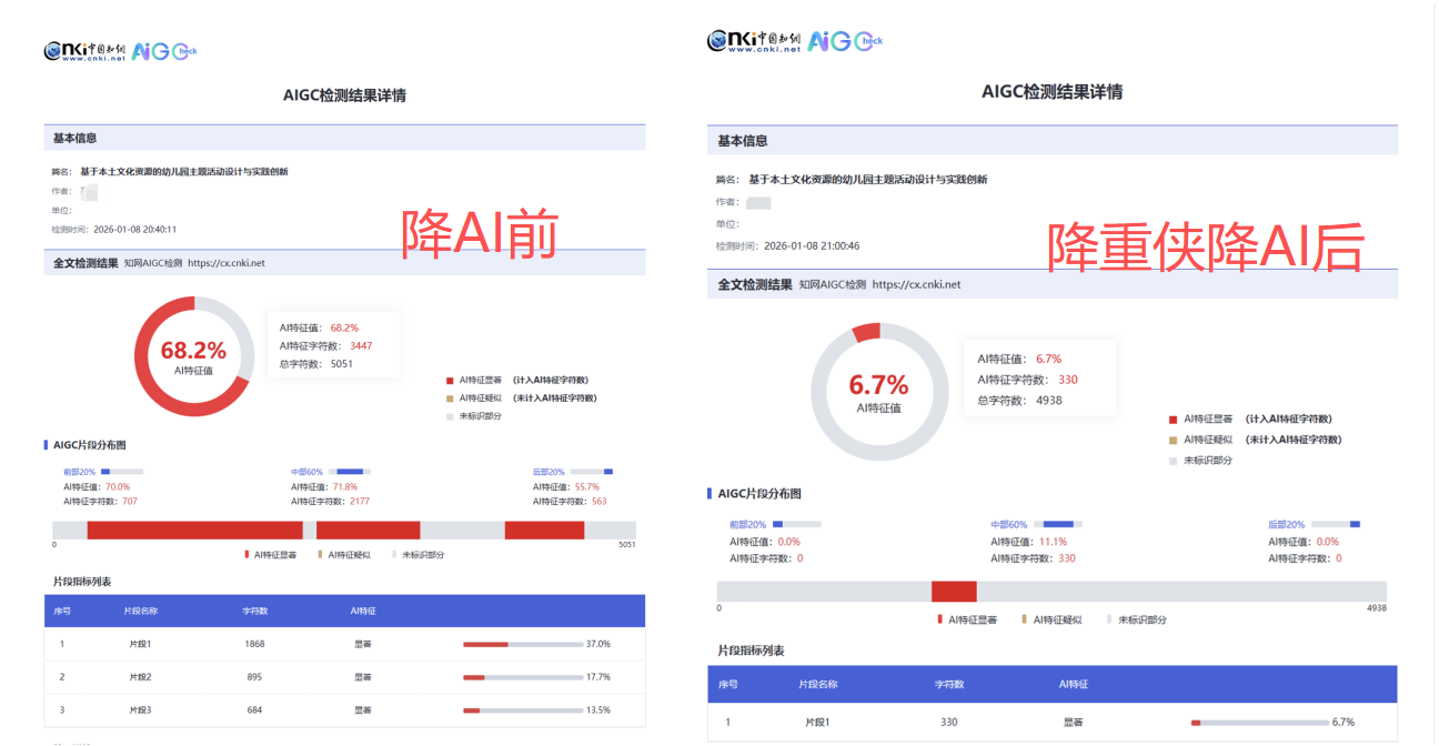 选降重工具,核心就是看效果。我拿一篇AI生成的论文初稿测试,初始知网AIGC率68%,用降重侠处理后直接降到6%,远超“低于20%”的承诺标准。身边学市场营销的朋友更夸张,她的论文初始AI率高达92%,改完后降到12%,导师还夸学术表述比她自己写的更严谨。