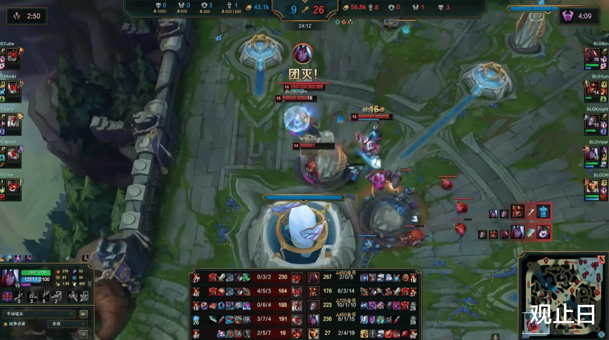 WE打野Monki的赵信虽然“超雄”附体见人就捅,但每次捅进去都是送温暖。24分钟,BLG轻松推平基地。