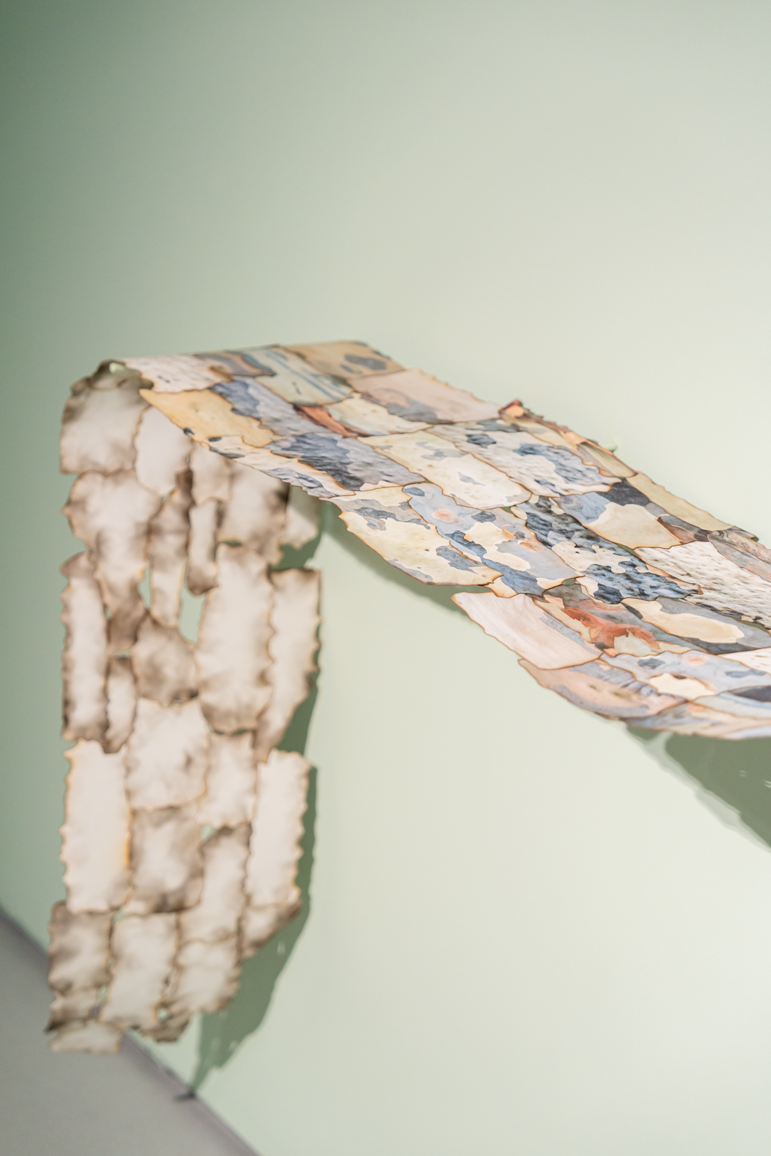 我们能在将火灾后的灰烬与绿苔直接附着在底片的照片上,看到灾难的无助与悲恸;能在与画笔线条的再现中,看到被工业文明碾压蹂躏后又被放弃的荒土;
