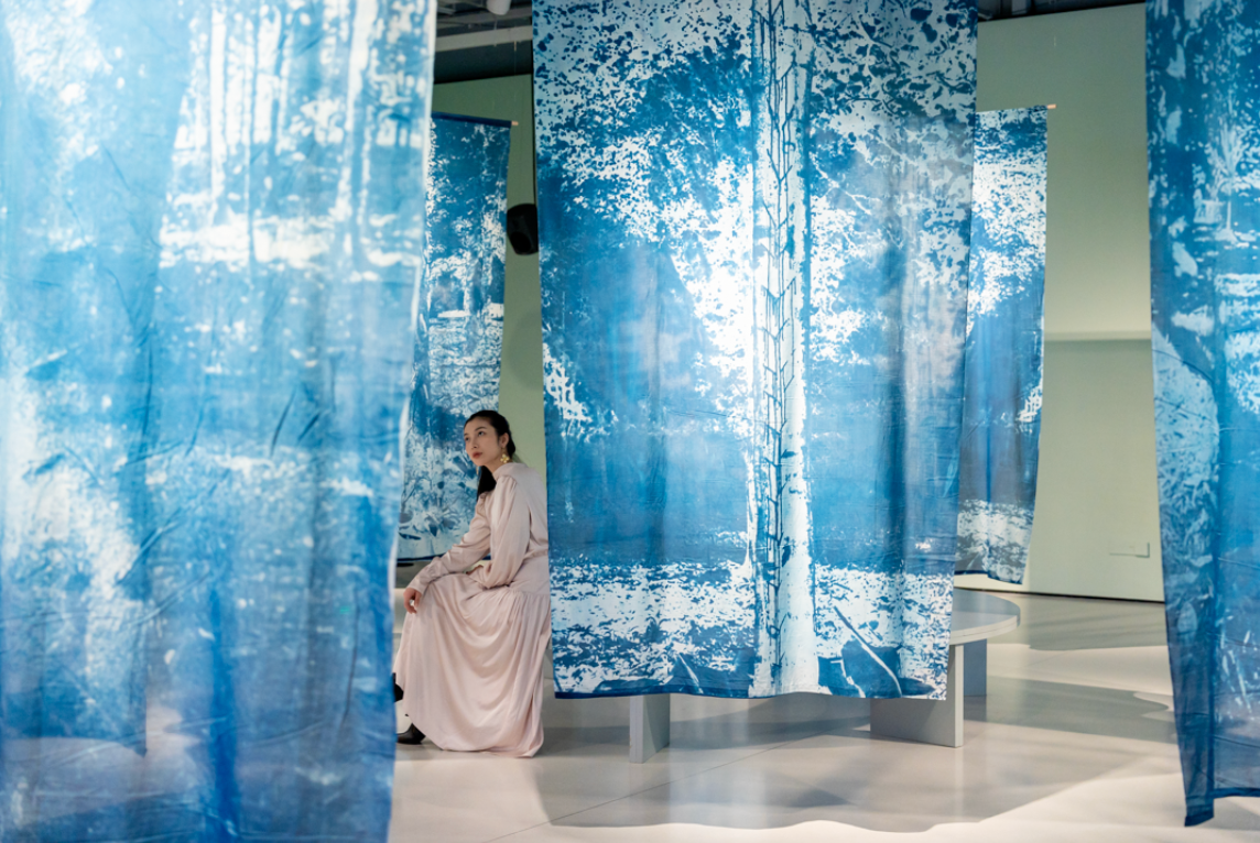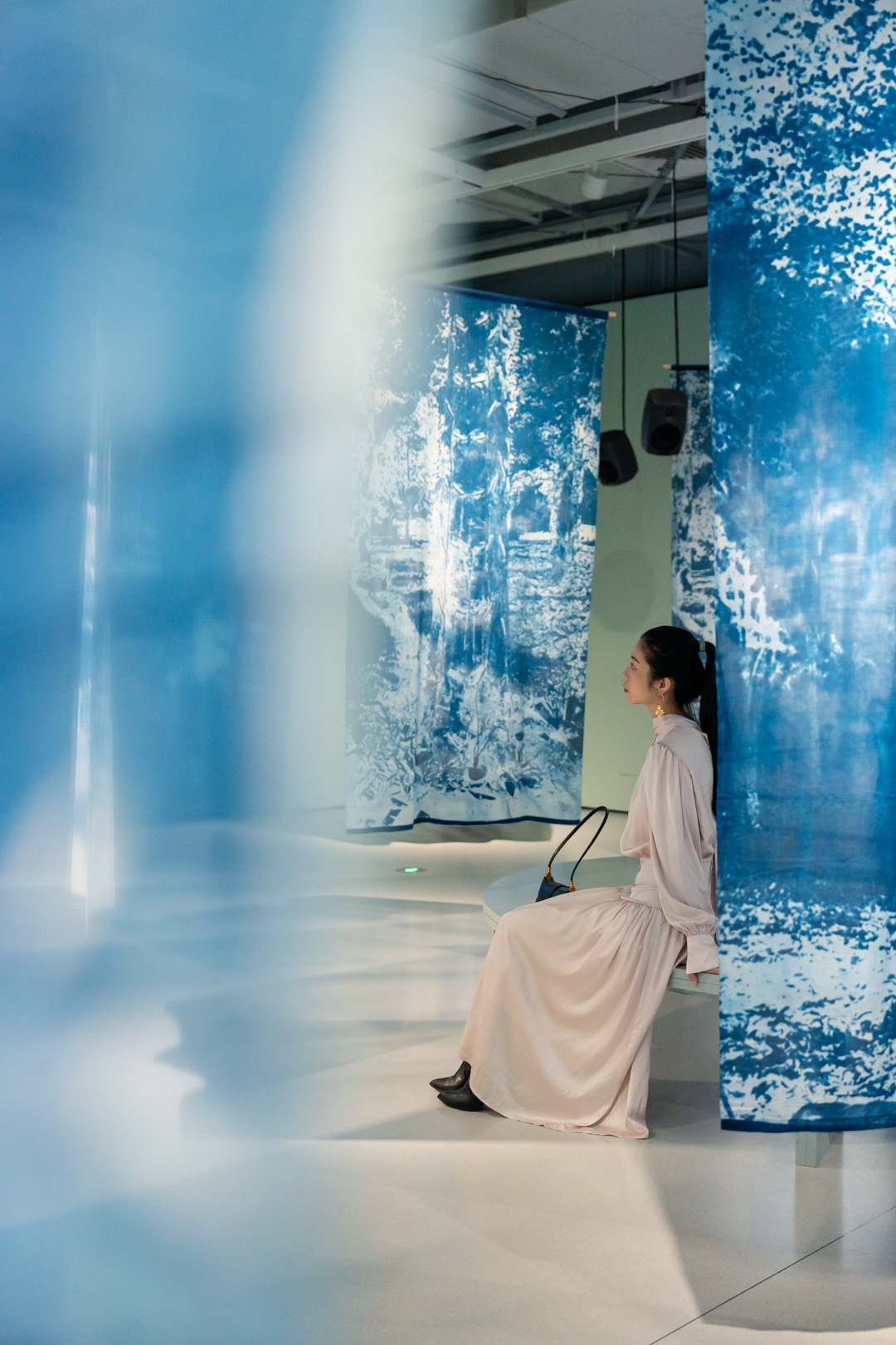 能在帷布构成的海洋之林间代入人鱼的身份,倾听海洋的低语;也能通过影片感受人类给生态带来的文明疮疤。