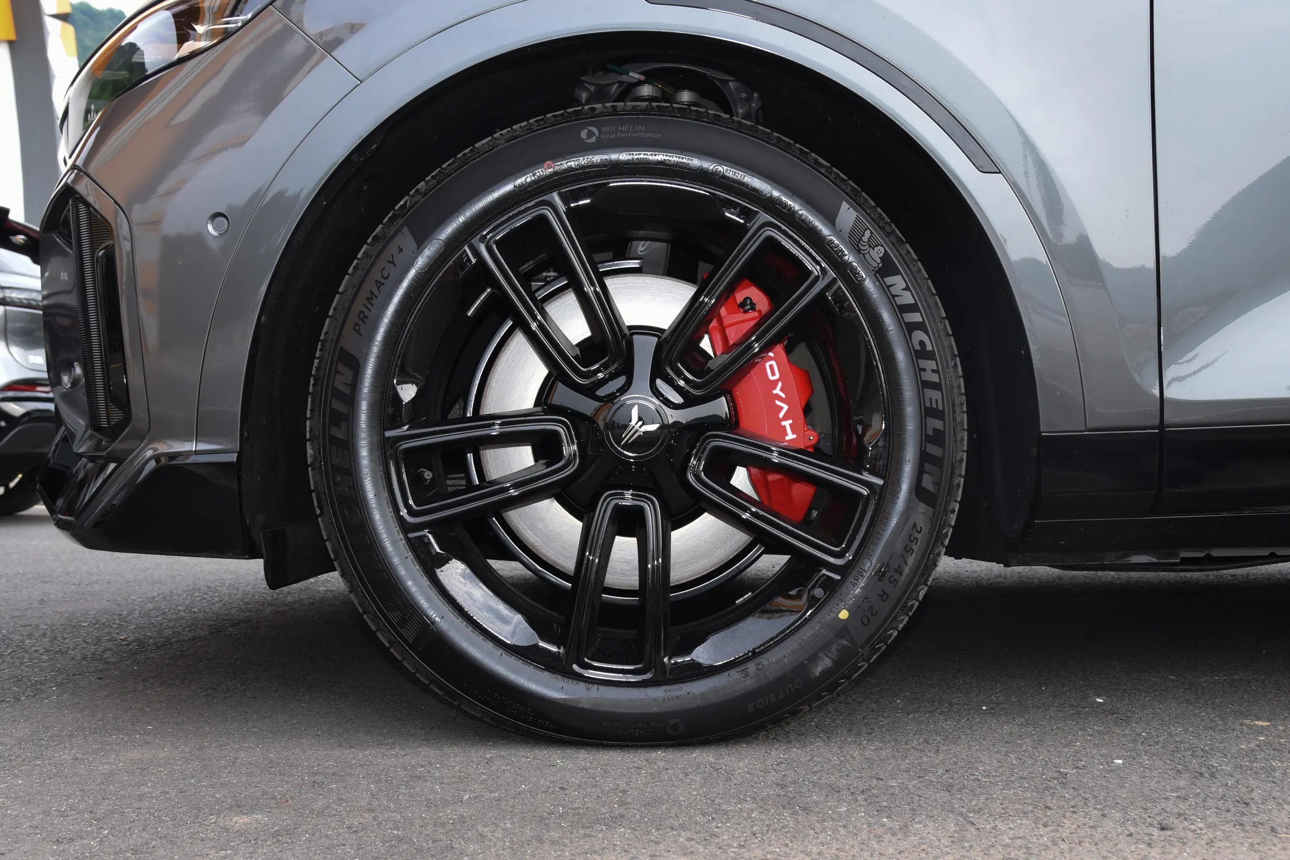 最后再来说说外观设计,岚图FREE 318的前脸使用了较多硬朗线条,看起来具有机甲硬核气质,而车身造型则是旅行车和SUV的结合体,有着明显的跨界风格,20英寸黑色轮毂、前轮大尺寸红色刹车卡钳、车顶末端大号尾翼以及亮黑色包围,看着很有性能车的运动感,而尾部饱满,熏黑贯穿式尾灯内部为箭羽样式,LED光源亮起后很醒目。