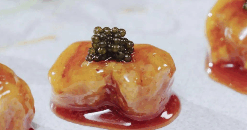 来源:揾食珠三角(微信公众平台)食 材: 五花肉 、鸡蛋、 醋、 茄酱 、酸梅酱 、鱼子酱制 作五花肉去皮切块,腌味后裹上蛋液和生粉。五花肉下油锅,炸至表面金黄酥脆,浮于油面就证明里面的肉熟透了。加热砂糖,下白醋、番茄酱、红醋搅拌均匀,过程中还要不断加入白砂糖,下少许酸梅酱煮至冒泡凝固。炸好的五花肉放进酸甜酱中,均匀裹上酱汁。上碟后放少许鱼子酱点缀即可。【剁椒鱼籽酱】