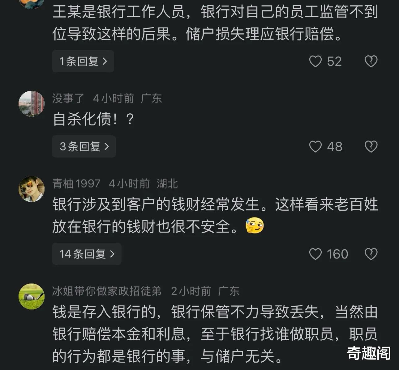 令人震惊的是,王某姗在转移资金的时候,很多客户是不知情的。所以她都会交代客户,如果用钱,需要提前告知她,方便她将资金转回到客户的账户中。这种行为,不可谓不大胆。一位女性客户因为要给儿子筹办婚礼,去取钱时发现78万的存款,只剩下4000多块钱。
