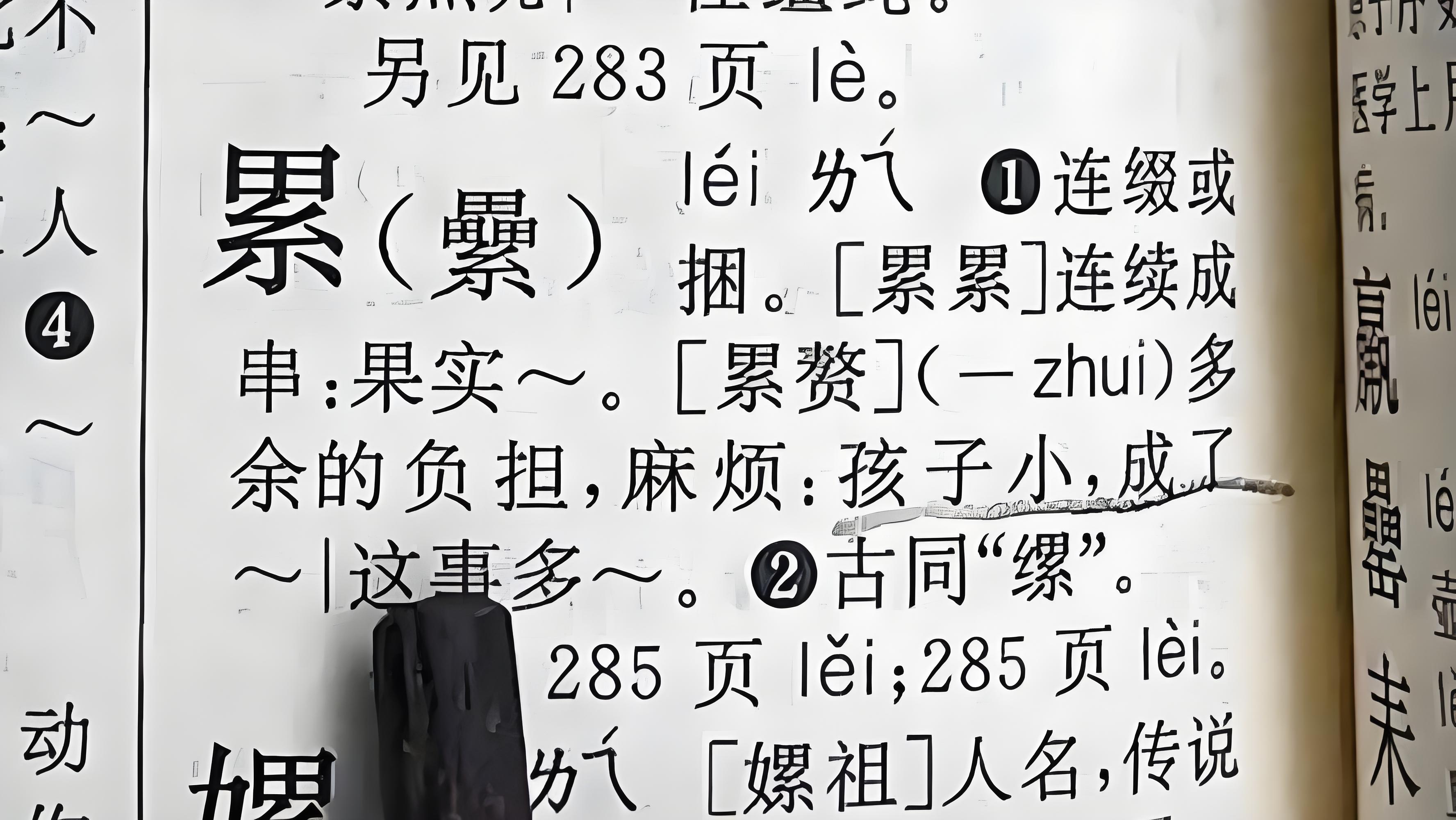 事情是怎么一回事呢,事情的起因是这样的:有读者在翻阅《新华字典》时发现“累”léi这个字的例句中有一句“孩子小成了累赘”。