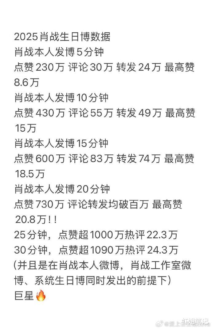 数字会说话,但今天这些数字简直在呐喊! 10月5日,肖战在生日当天发布了一条微博,仅用25分钟就突破了1000万点赞,随后在10小时内强势突破2000万大关,再次刷新了社交媒体的互动纪录。