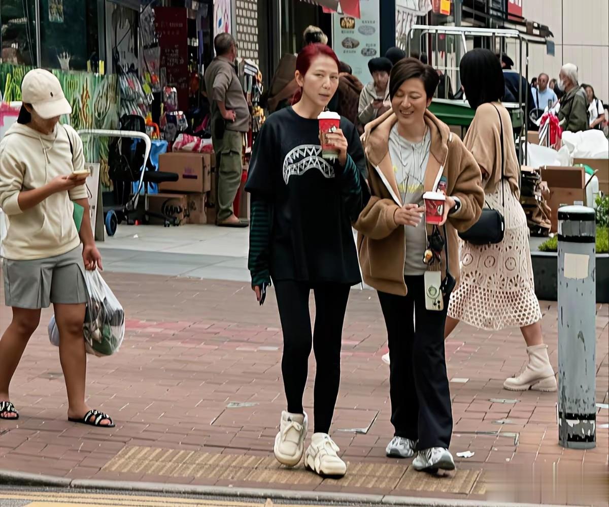 蔡少芬和好闺蜜陈法蓉两个人现身香港街头,作为好闺蜜四人团的洪欣和朱茵并没有一起,一头酒红色长发的蔡少芬在人群中尤为显眼。