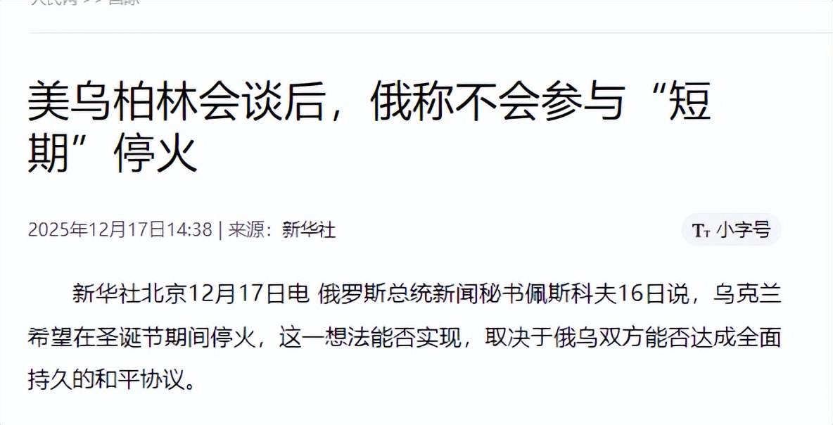 最出人意料的是他还提出一个特殊的停火倡议。这位乌克兰总统公开表示,希望俄罗斯能在节日期间停止对能源基础设施的攻击,“让平民至少能过一个有电的圣诞节”。