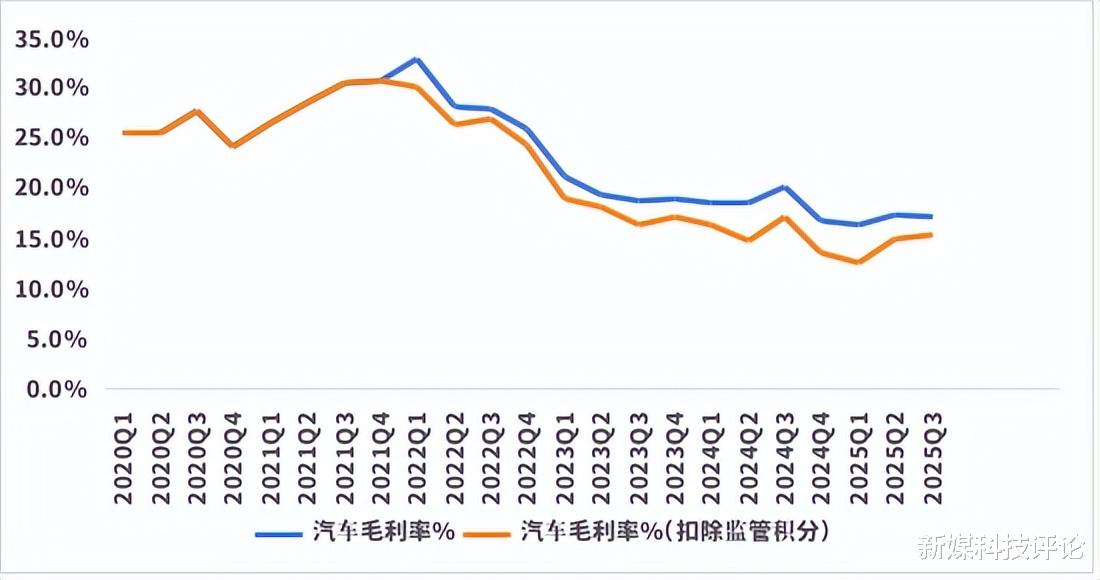 具体到汽车业务,2021年,特斯拉的单车毛利润约为1.3万美元。但在三季度,按照4.18万美元的单车均价,15.4%的汽车业务毛利率来推算,其单车毛利润约为6400美元,缩水超50%,甚至低于一些中国车企。