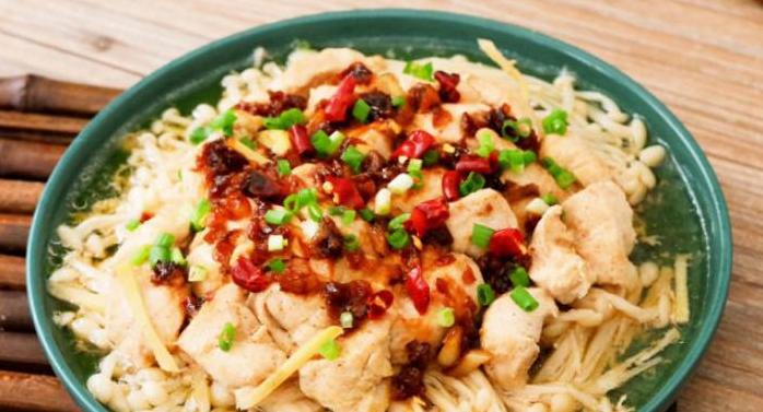 蒜蓉金针菇蒸鸡胸肉的清新搭配接下来要介绍的是蒜蓉金针菇蒸鸡胸肉。