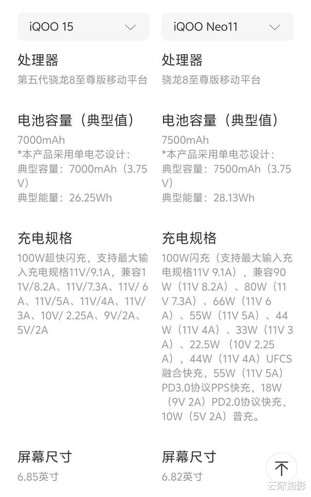 硬件性能:iQOO15搭载了第五代骁龙8至尊版处理器和自研电竞芯片Q3,可实现双芯协同,其中第五代骁龙8至尊版处理主要运算,而Q3芯片则专注于处理游戏渲染、超分和超帧任务。