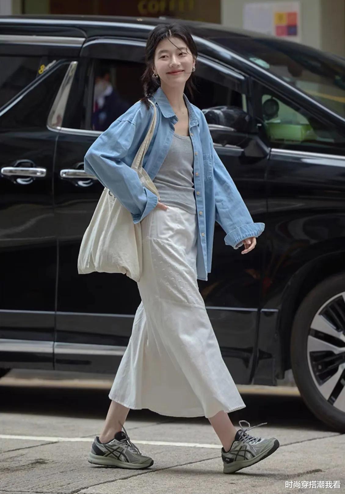 牛仔衬衫+米白色休闲裤米白色裤子作为今年的流行单品,与牛仔衬衫简直是绝配!将衬衫扎进裤子里,既利落又洋气,走在街上回头率超高。