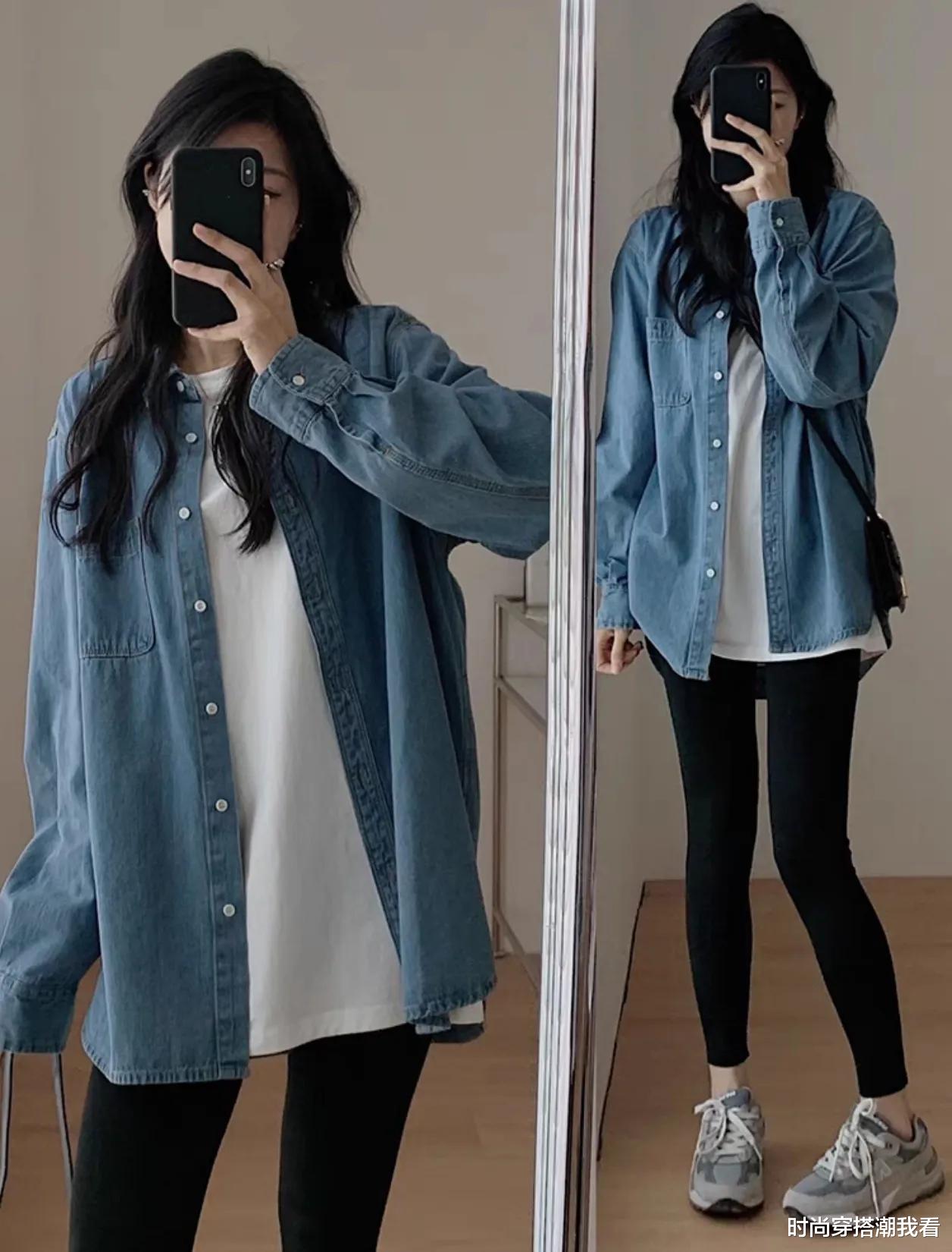 如果你想要一种更加经典且百搭的穿搭方式,那么牛仔衬衫搭配黑色紧身裤绝对是个不错的选择。黑色紧身牛仔裤能够很好地修饰腿型,显瘦效果一流。而牛仔衬衫的加入,则为整体造型增添了一份随性和不羁。