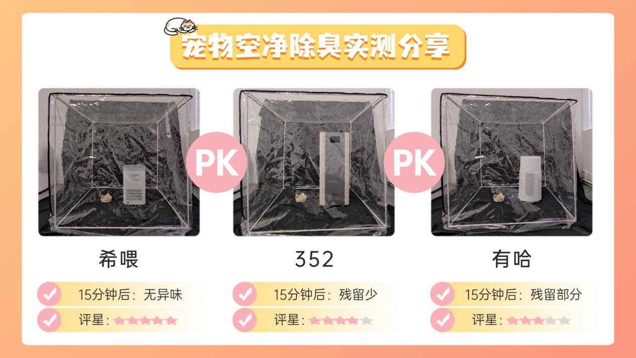 在除臭稳定性上,希喂更适合长期、高频异味环境,352 居中,有哈偏辅助型。