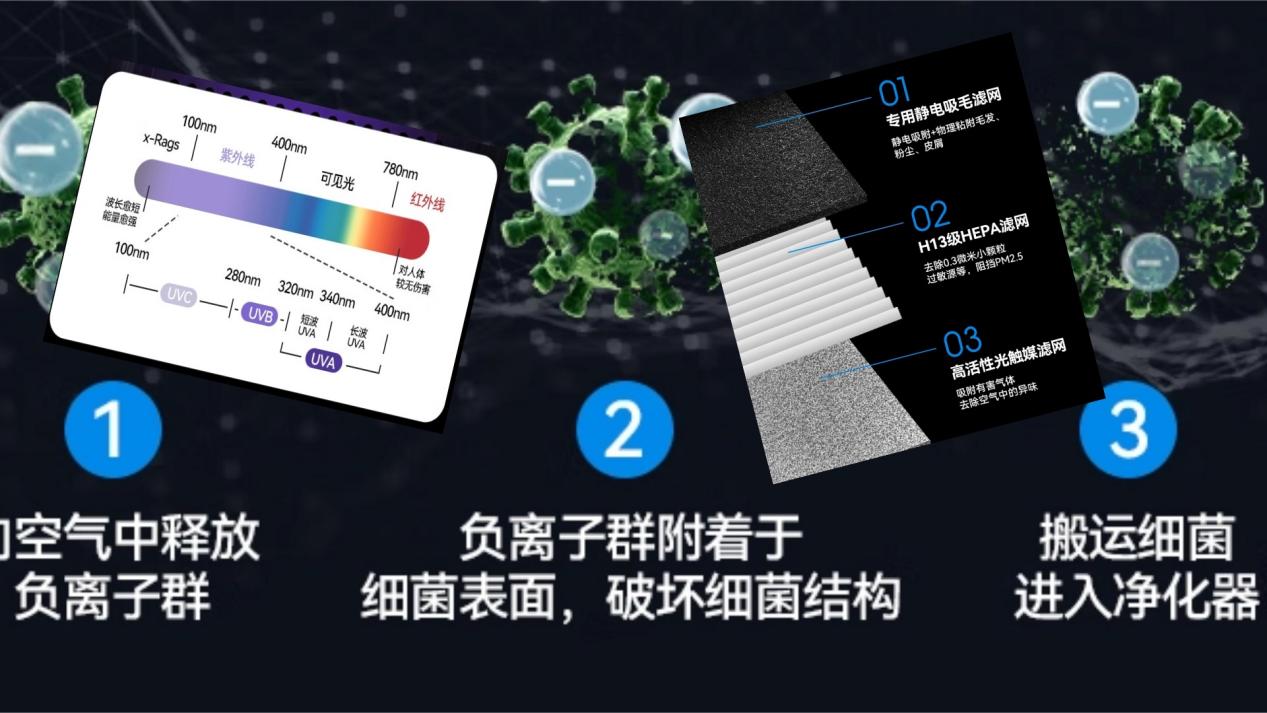 除味方面,它不是只靠活性炭吸附,而是引入XFresh纳米滤芯技术去分解更典型的养宠异味源(比如猫砂盆氨味、体味、潮味),实测 除臭率达到99.73%,连续用下来不容易出现异味反弹。为了把“除毛除臭灭菌”做得更完整,滤芯结构采用多层组合:前置静电滤毛层+ H13 HEPA +光触媒分解+ UV灯珠+等离子模块,分别对毛发、颗粒物/过敏原、气味分解与抑菌做分工处理,整体更贴近养宠环境的长期运行需求。