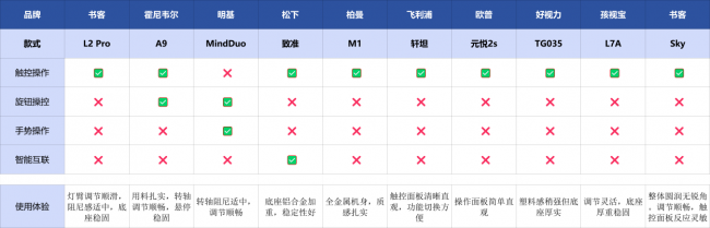 从长期使用体验来看,书客L2 Pro和书客Sky调节顺滑,触控反应灵敏,且通过了十年抗衰减测试,耐用性有保障。霍尼韦尔A9和明基MindDuo转轴阻尼感细腻,悬停稳固。柏曼M1全金属机身质感出色但较重,适合固定位置。松下致准和飞利浦轩坦做工扎实,操作直观。欧普元悦2S和孩视宝L7A中规中矩,够用但不突出,好视力TG035功能基础,对得起价位。