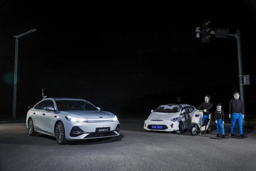 吉利银河A7在前方有遮挡儿童横穿场景中,以60km/h车速面对突然从两车之间穿出的儿童假人,精准识别小目标并快速制动,稳稳刹停在安全距离外;在前方多人横穿场景中,以80km/h车速准确识别不同大小行人目标,成功制动刹停未发生碰撞;在前车紧急刹车场景中,模拟高速路段90km/h跟车行驶并开启ACC自适应巡航功能,AEB自动紧急制动系统瞬间识别前车制动动作,平稳完成减速刹停,未发生碰撞;在前方同向50%偏置静止压线车场景中,以50km/h车速遭遇前方50%偏置压线车,瞬间捕捉到这一不易识别的静态目标,立刻触发制动指令并平稳完成减速刹停;在前方遇静止车场景中,以120km/h高速,AEB自动紧急制动系统第一时间发现停滞车并做出刹停动作,制动力度足够,刹停后还保留常规安全距离;在前方遇静止车(夜晚)场景中,低能见度下以100km/h车速,精准识别前方黑色静止车并实现刹停;在前方二轮车横穿(夜晚)场景中,夜间以45km/h车速面对横穿二轮车,快速捕捉动态目标,成功规避了碰撞风险;在前车切出遇静止车场景中,AES主动紧急避让功能则在时速130km/h发现前车并线消失,前方出现障碍车后,能够第一时间发现并通过主动变道实现合理避让并稳定驶离。