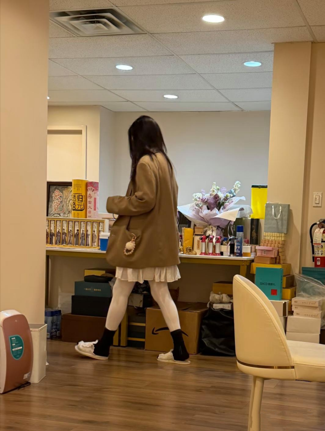 她缓步于花架前,低头细看花枝时的专注神情,仿佛仍是当年那个对世界充满好奇的少女。这份不经意的装扮与姿态,并非刻意营造的“冻龄”,更像是一种内化的生活态度——她坦然接受年龄的增长,却也始终保留着内心对美好的敏感与钟爱。那袭公主裙与雪地靴的搭配,在他人身上或许显得突兀,于她却是浑然天成的自我表达,是历经千帆后,依然选择以最柔软、最真诚的一面拥抱生活的证明。