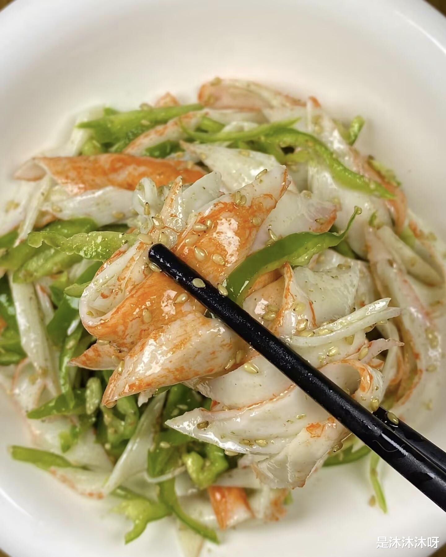 而且这道菜的可塑性超强,你要是喜欢蒜香味,可以多放点蒜末,那又是另一种风味;你要是喜欢酸甜口,可以加点番茄酱,做成糖醋蟹柳;你要是想当凉菜吃,焯水拌一拌,也是清爽开胃。怎么变都好吃,这就是家常菜的魅力吧!