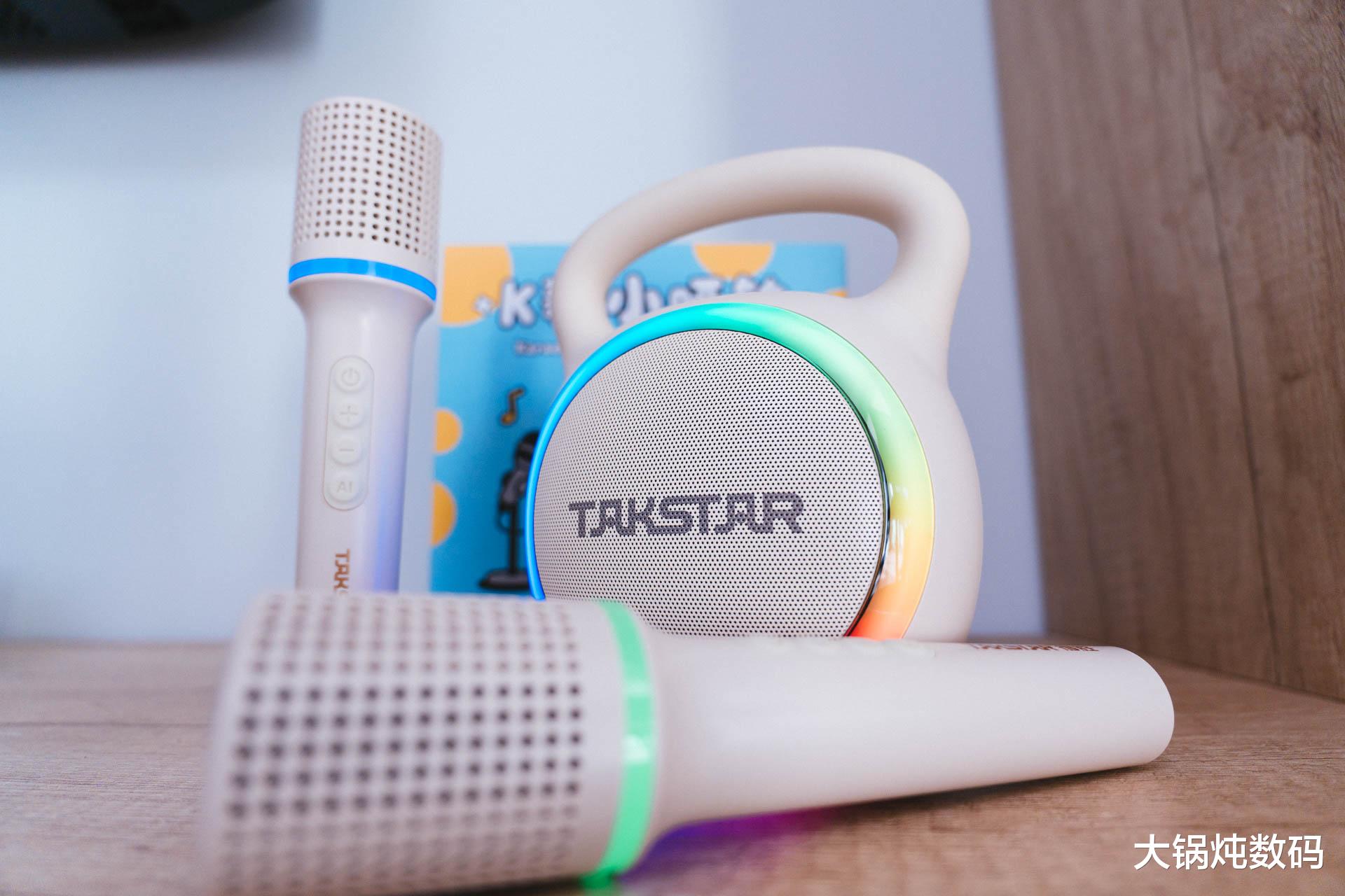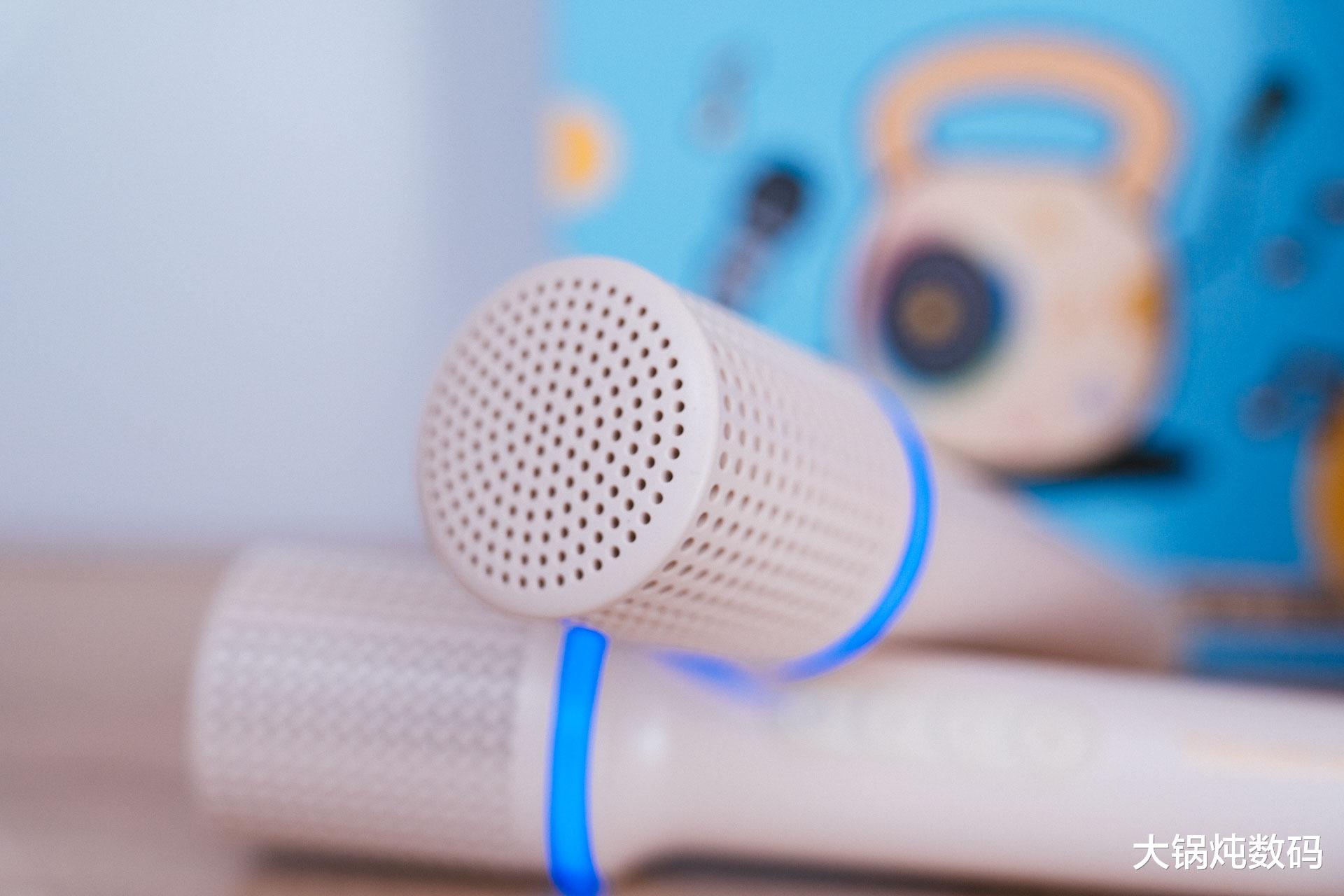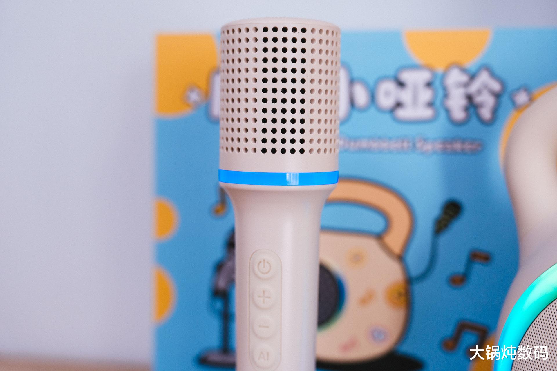 麦克风采用了背极式驻极体拾音器,良好的指向性可以在唱歌时提升麦克风的拾音质量。麦克风也具有独特功能,单击麦克风的AI按键就可以切换成不同的音效,就算没有专业声卡设备,你也可以唱出专业的音响效果,或者各种搞怪效果,我家娃就非常喜欢用搞怪的声音给动画片做配音,玩的不亦乐乎。