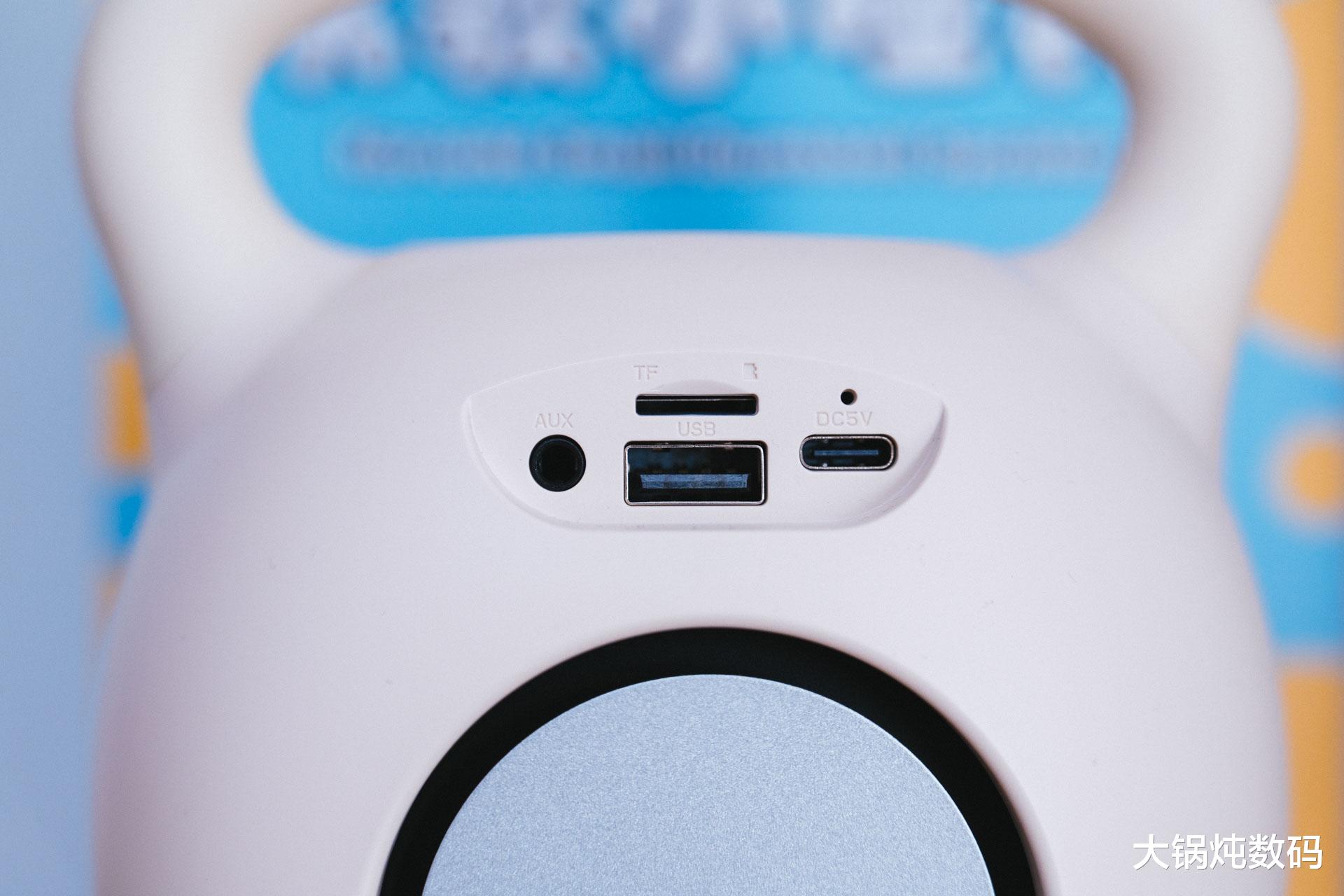 音箱的背面集成了各种接口,别看得胜H2的身材不大,但是接口一应俱全,可以连接有线设备的3.5mm AUX接口,TF和USB存储介质播放接口,以及Type-C充电接口。无论你想使用什么方式播放音乐都没问题。