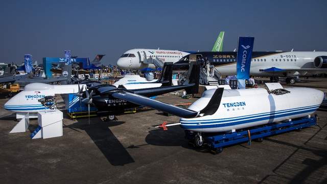此外,本届航展设立了低空经济馆、商用飞机产业馆、民用航空产业展区等七大主题展区(馆)。新设立的低空经济馆已成为无人运输“重器”的大型秀场,新型大型固定翼无人运输机、大载重倾转旋翼无人运输机、纵列式双旋翼无人运输机等纷纷重装亮相。今年8月11日成功首飞、11月1日刚刚完成自贡低空装备大会飞行表演的腾盾大型双发无人运输机也在本届航展首次展出,并成为了低空经济馆的“镇馆之宝”之一。据了解,该无人机最大商载重量2吨,装载空间达到了12立方米,智能化的指挥控制系统、高可靠的自主飞行能力、模块化的整体货舱设计有效降低了航空运输的操作难度和运营成本,是国内目前首屈一指的已经具备成熟运营能力的2吨级无人运输机。