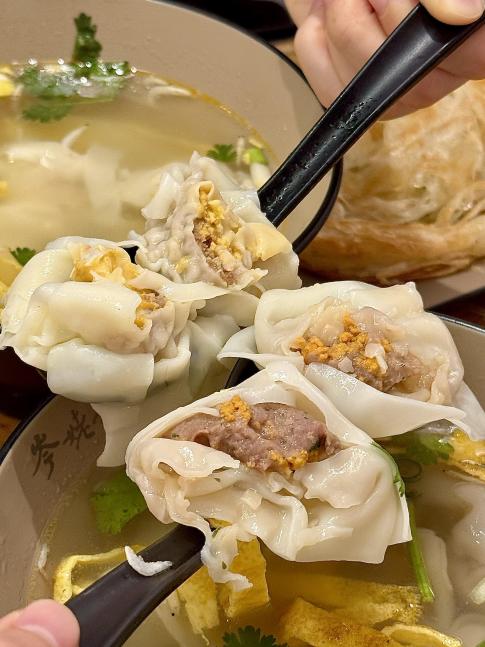 店内烟火气浓,虾仁馄饨咬开能看到整颗虾仁,肉火烧外皮酥脆。早餐吃一份,暖乎乎的,开启元气一天。