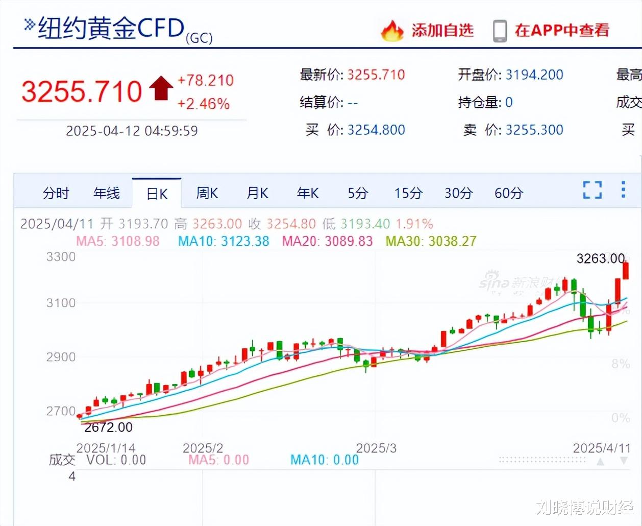 最近几天金价再次飙升,于昨天创出了每盎司3263美元的新高。