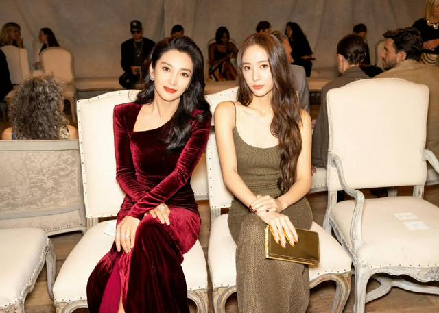 在此次Ralph Lauren的秀场头排,李冰冰还与郑秀晶双美同框。