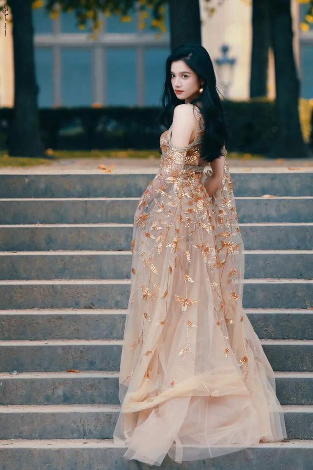 此次受邀参加兰蔻晚宴的张婧仪,身穿金色公主裙。小编直接梦回朱韵换上公主裙表白李峋那一幕,谁懂?