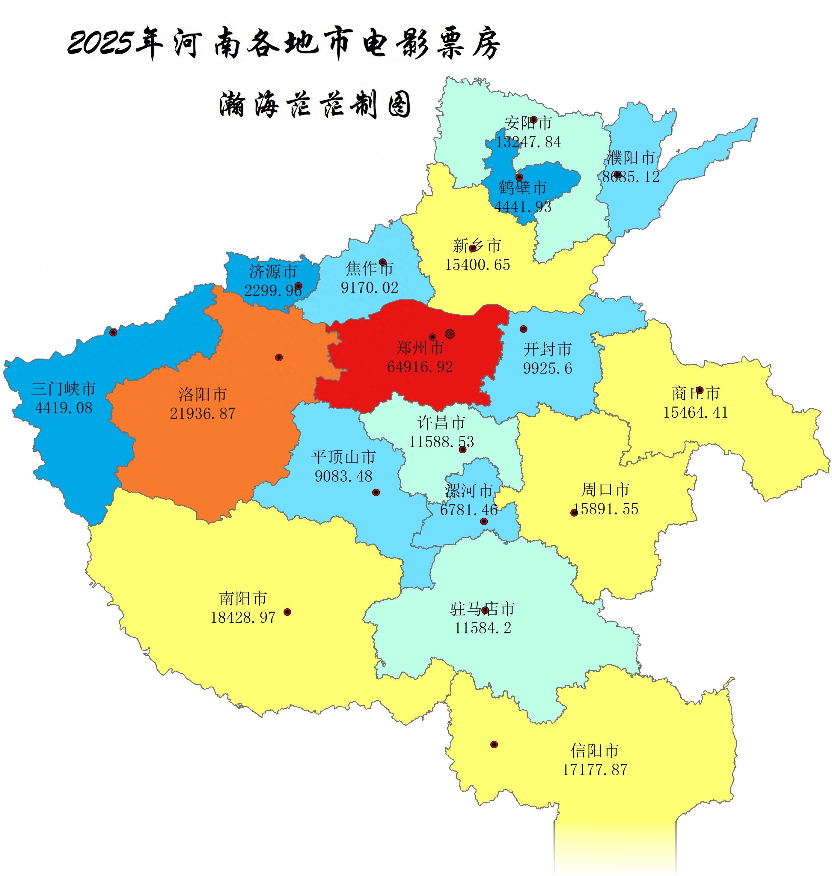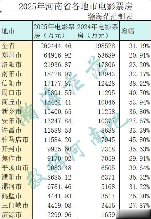2025年,随着一部现象级电影《哪吒》的爆火,电影票房有所提高。那么,我们就来看下2025年河南省各地市电影票房吧。