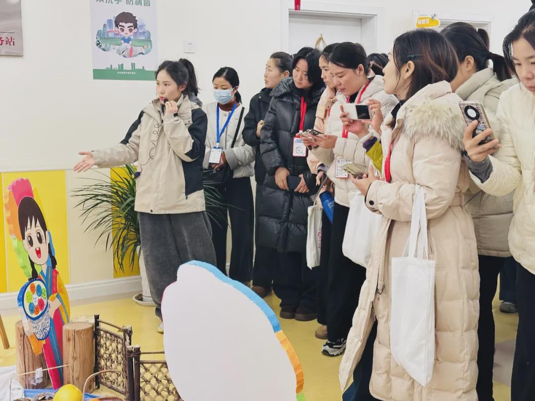 观摩活动的首站,是一场沉浸式的园所文化探访。在讲解老师的引导下,原阳县观摩团漫步于百花幼儿园的室内外空间,从童趣盎然的班级环创,到充满自然意趣的户外游戏区,再到彰显办园理念的文化展示墙,在实景中体悟百花园所文化的独特魅力与育人温度。