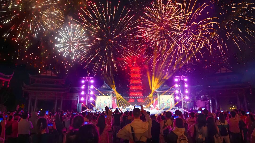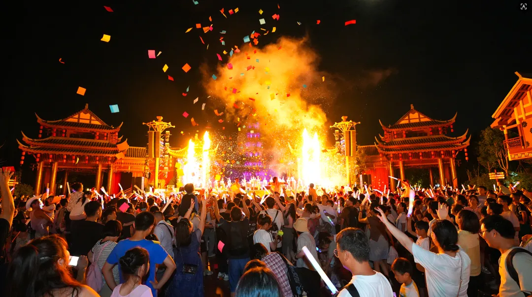 夜间经济成为拉动假日消费的“新引擎”。假日期间,夜幕下的鹰潭化身“不夜城”,景区、街区、商家联动发力,构建起“景区夜游+街区夜娱+非遗夜演”的多元格局。龙虎山景区全新推出高空栈道主题夜游,为游客解锁夜间游玩新体验,进一步带动景区夜经济消费。方特东方神画、周塘小镇、白鹤湖景区、青茅境景区、嘉乐城等点位推出烟花秀、打铁花、非遗瓦子灯、千人火把舞、cos动漫秀等夜游项目,丰富游客双节游玩体验,进一步激活鹰潭夜经济活力。
